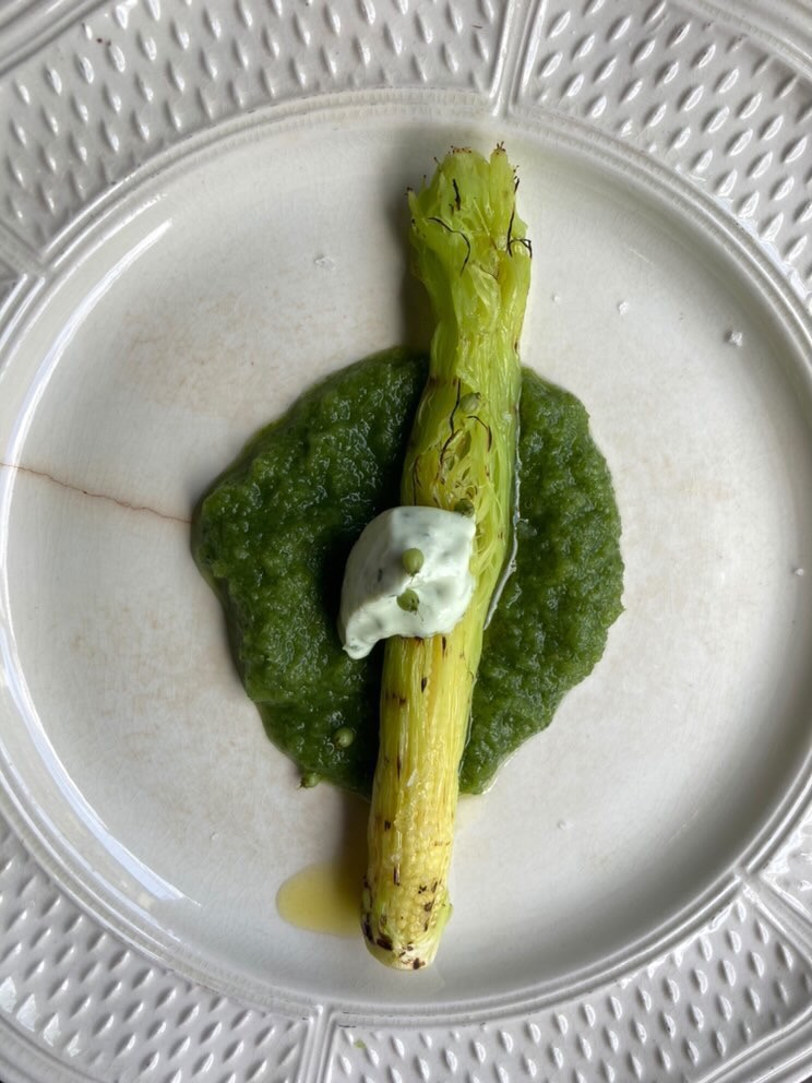 たとえば、鋳物のSTAUBの鍋のふたをあけると、そこには蒸し焼きされた小さめのカリフラワーがチーズをまぶされ、ひょこんと鎮座していたりする。意外性や芸術性を一皿、一皿で感じ、わくわくの連続といっても過言ではないかもしれない。