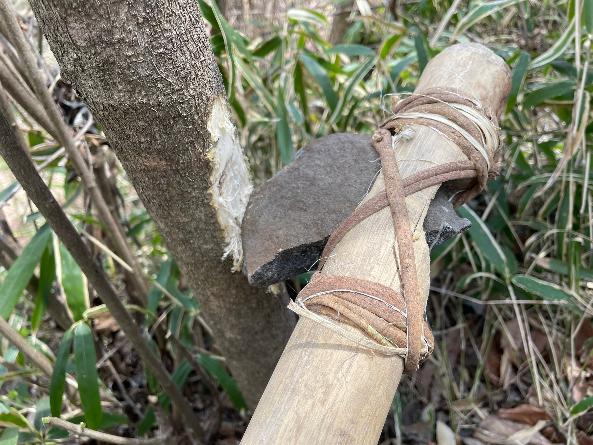 「コロナ禍の時に、ちょうど仕事が暇になり、火を起こすとか木を切って家を建てるとか人間の最初の技術のようなものに興味があったので、そのような事をしてみようかというアイデアが出ました。火を起こすのもナイフを使えば簡単に出来ますが、サバイバル的なことでは足りなくて、一からやろうとしたら、物凄く深い世界でした。今の会社に入って、(数年)仕事をしていて、自分の力で生きているという実感がなくなってきていたのかもしれないです」