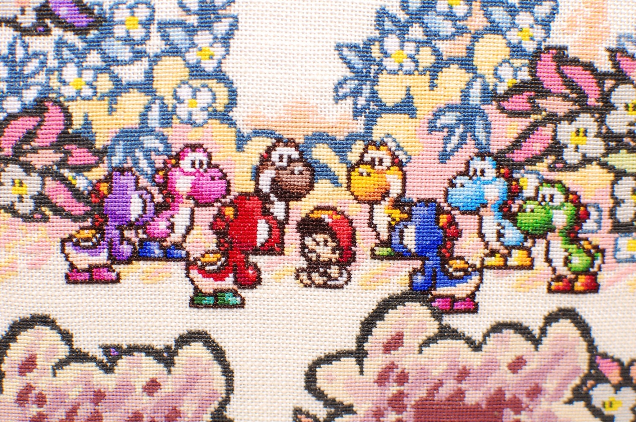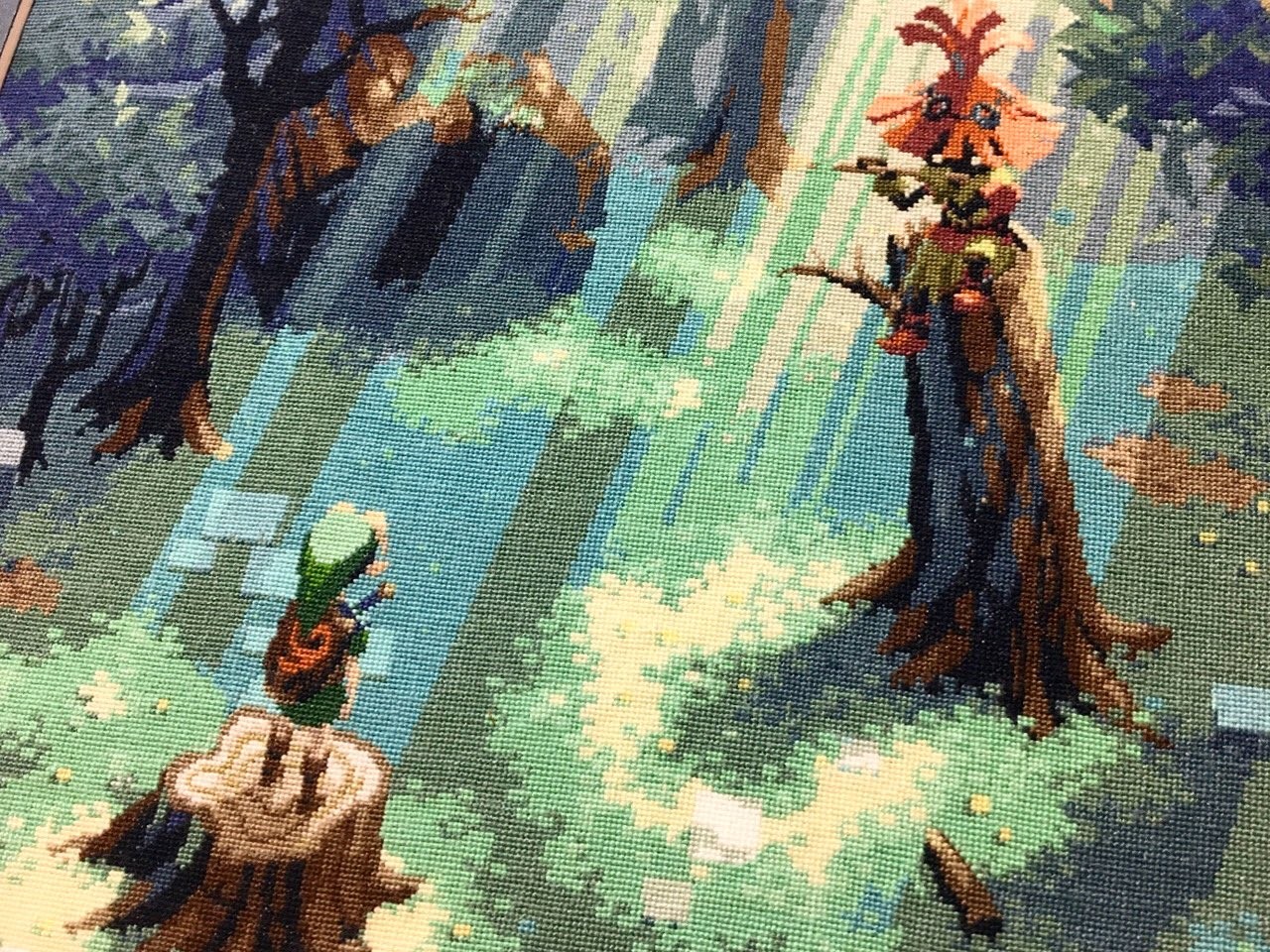 1番大変だったのは、20×27cmの今までで1番大きな『ゼルダの伝説』の作品です。Twitterでたまたま見かけた海外の方のドット絵に惹かれて、DMで「あなたの作品が大好きでぜひ刺繍で作らせて欲しい」とお願いすると快く引き受けてくださったので、制作に取り掛かりました。
