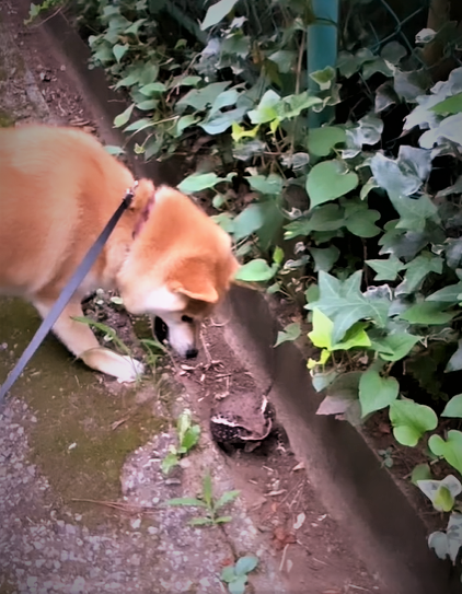 さくらが何か吠えてるな? と思って見に行ったら、カマキリを発見していて、最初はしばらくカマキリの周りをウロウロしながら威嚇して吠えていました。しばらくして、動画の様に手を出して見たり、噛みつきそうになったりしていました。
