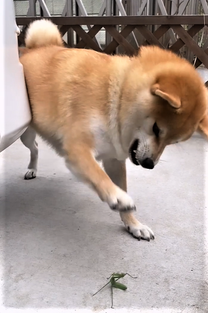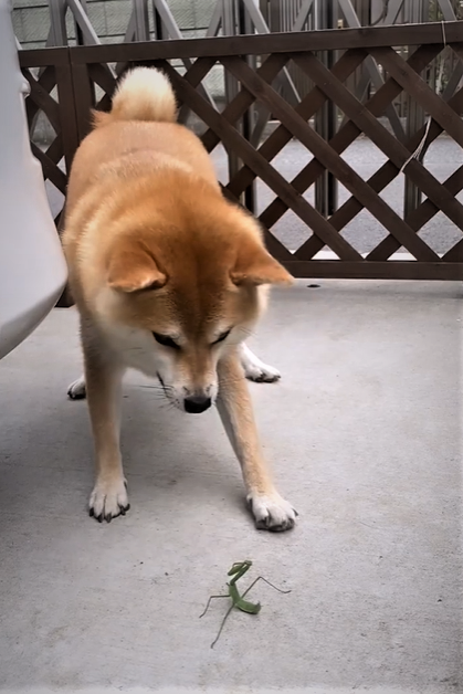 相手と体格差がありすぎると、戦いにはならないのが通常です。しかし、体格差が大きい柴犬とカマキリが、お互い必死に戦っている様子が面白いと、Instagramで注目されています。投稿された動画では、柴犬の方は何度も威嚇する様子で吠えながら口先でつつこうとしますが、カマキリはするどい鎌を盾にし、素早く体をよじりながらよけています。