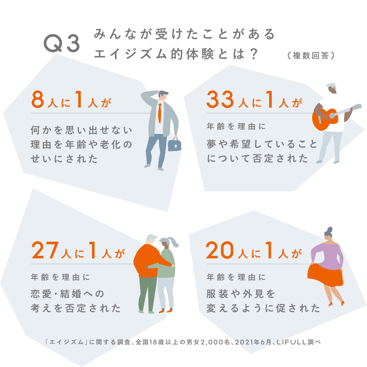 しかしこの課題は、日本ではあまり認識されていない。LIFULLの調査によると、エイジズムを「知っている」と回答した人は、2000人中1割に満たなかった。