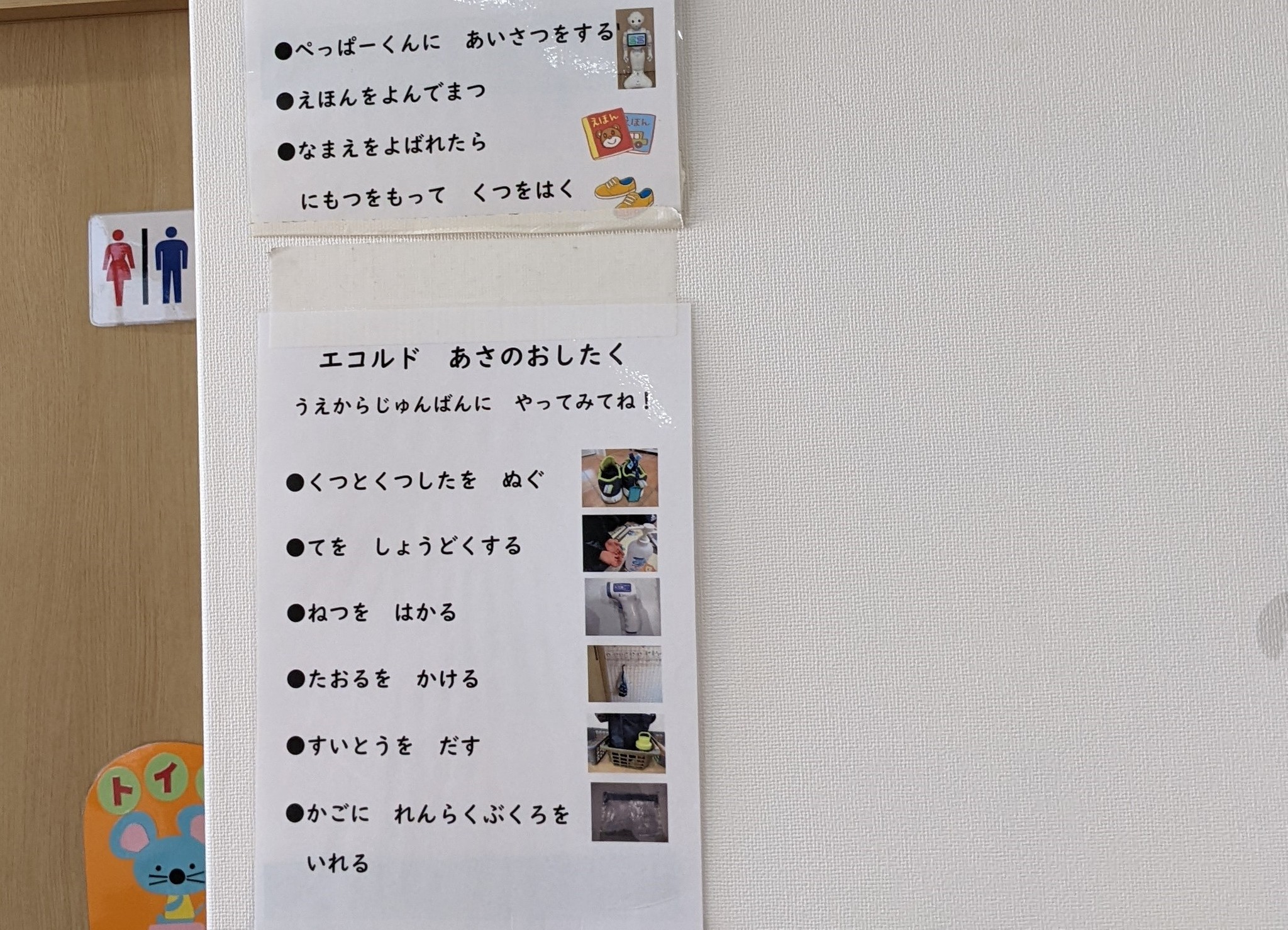 エコルドでは、全身を使って動く粗大運動や、手指を使った細かな動作である微細運動などのリハビリを重視している。また、多様な人が入り混じる、インクルーシブな場においても、共通の認識で活動できるように、絵カードや写真を使って療育を行っている。