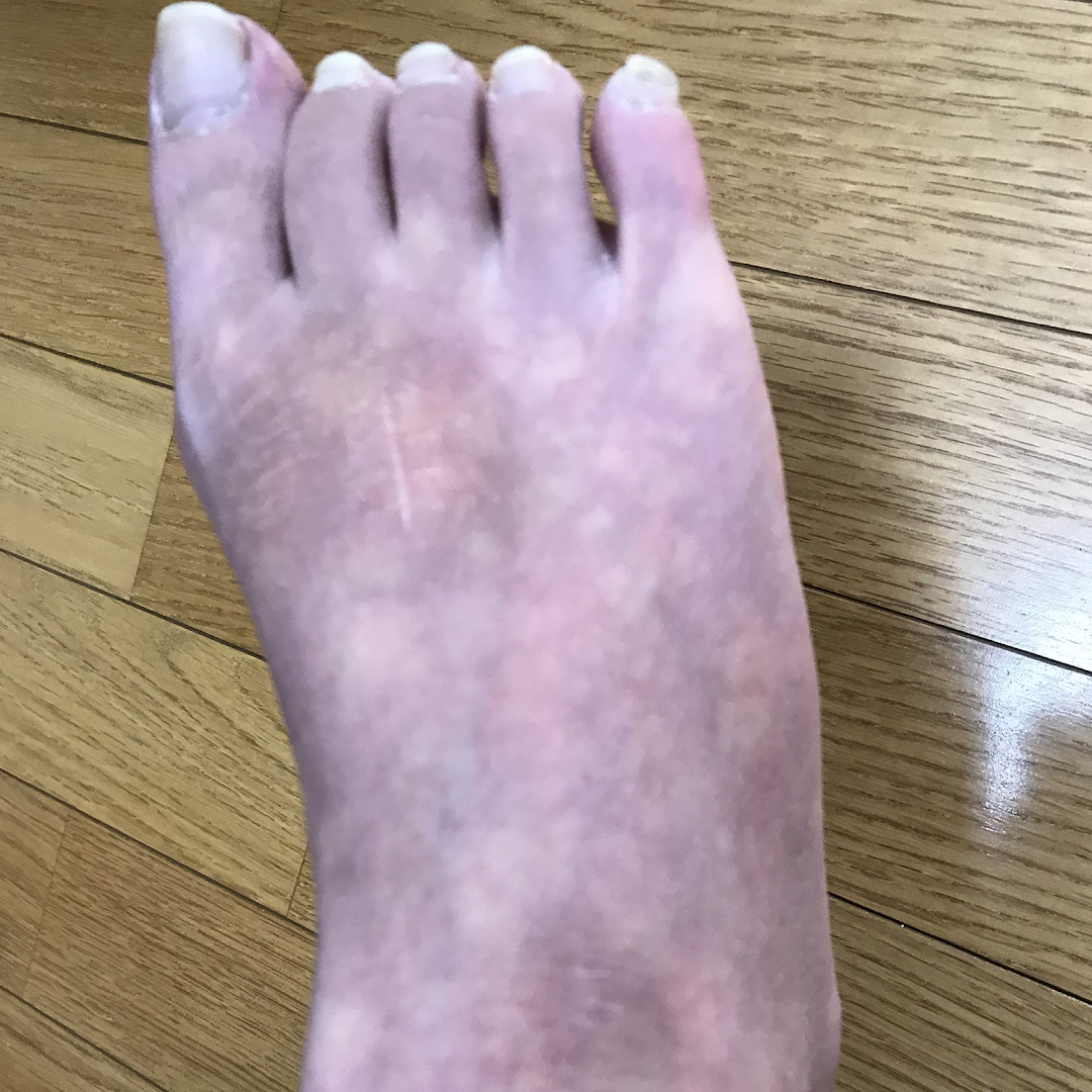 その後、痛みの原因と考えられた腫瘍を取り除いてもなお、痛みは強くなる一方で、「床に足をつくことも、シャワーも、ズボンの生地が右足(右下腿)に触れることさえも痛みに直結した」というほど、日常生活が困難に。次第に皮膚・筋肉・骨が委縮していき、右足の指を思い通りに動かせない状態にもなった。