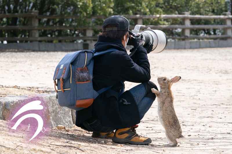 utaさんに、うさぎ写真家になったきっかけを聞くと、「大久野島のうさぎさんたちに出会ったことが何よりものきっかけです」と話す2人。以前は広島に住んでいて頻繁に大久野島に通っていましたが、熊本へ引っ越した今でも毎月5泊ほど大久野島に滞在しているそうです。