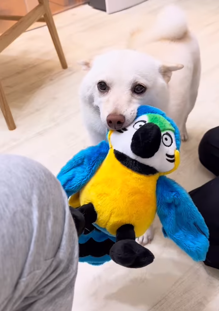 まめたが、動画の中で持ってきていた鳥のおもちゃは、以前のお気に入りで、今一番好きなおもちゃは弟の靴下だそうです。
