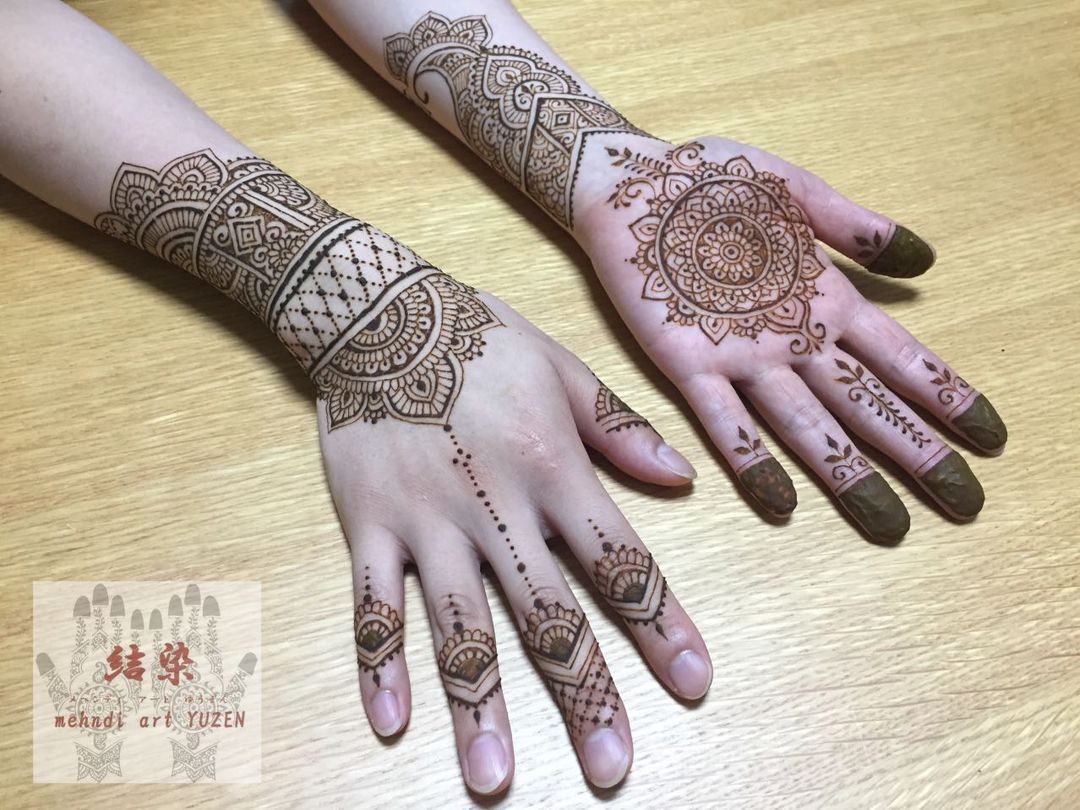 結さんについて記述する前に、メヘンディとはインド、ヒンディー語でヘナで肌をそめるアートそのものを指す言葉。ヘナはアラブからモロッコ辺りの地域で紀元前から生息していた植物であり、ヘナを使って白髪を染めたり、体にさまざまなデザインを描いて親しまれている。インドでは、花嫁の手や足など体にヘナタトゥーを入れたり、祭りや儀式など日常的にも入れて、生活の一部として浸透している。