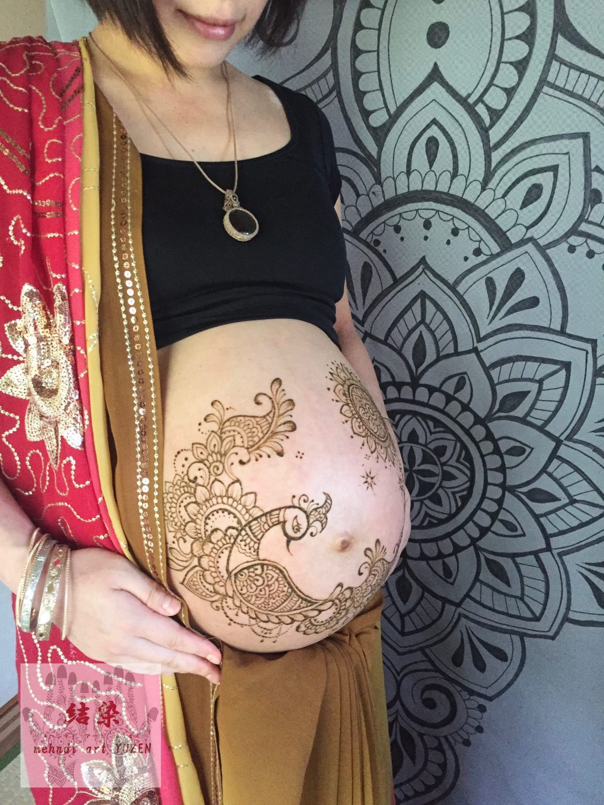 これまで、人の体を中心に、手や足、背中、ときにスキンヘッドの頭全体に、また、妊婦の腹部にマタニティペインティングをしたり、ハードなものであれば、スマホやパソコン、レアなケースでは客のリクエストでバイクのパーツにヘナタトゥー柄を描いたこともあるそう。