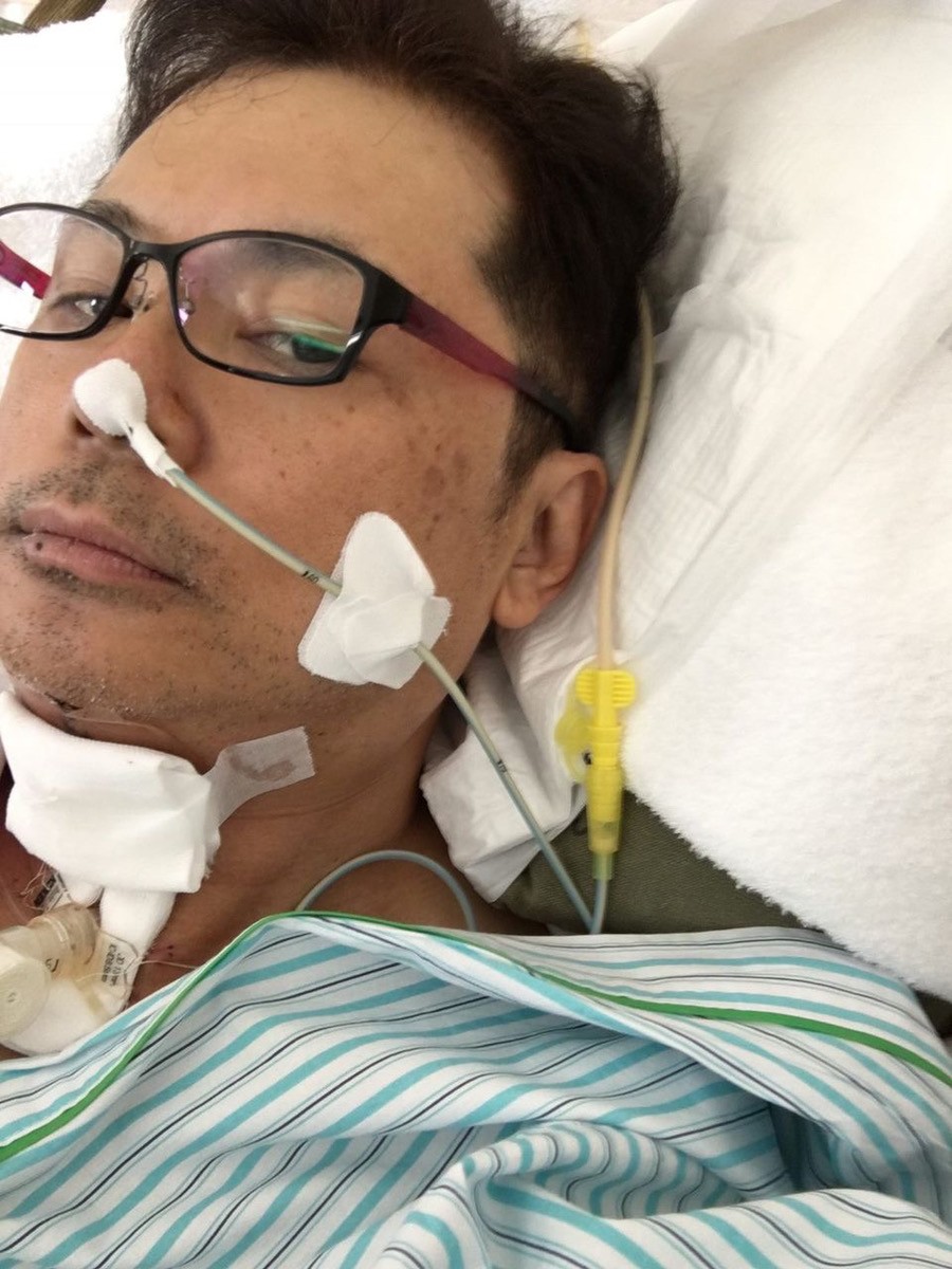 しかし、がん治療から3年後、さらなる試練がパツさんを襲った。口の右側が痛み、受診した結果は「放射線性下顎骨骨髄炎」。放射線治療の後遺症であごの骨が腐っていた。広範囲に広がっていたため、右あごを全摘出。自分の太ももから筋肉を移植したが、今も顔の右側は凹んでいる。