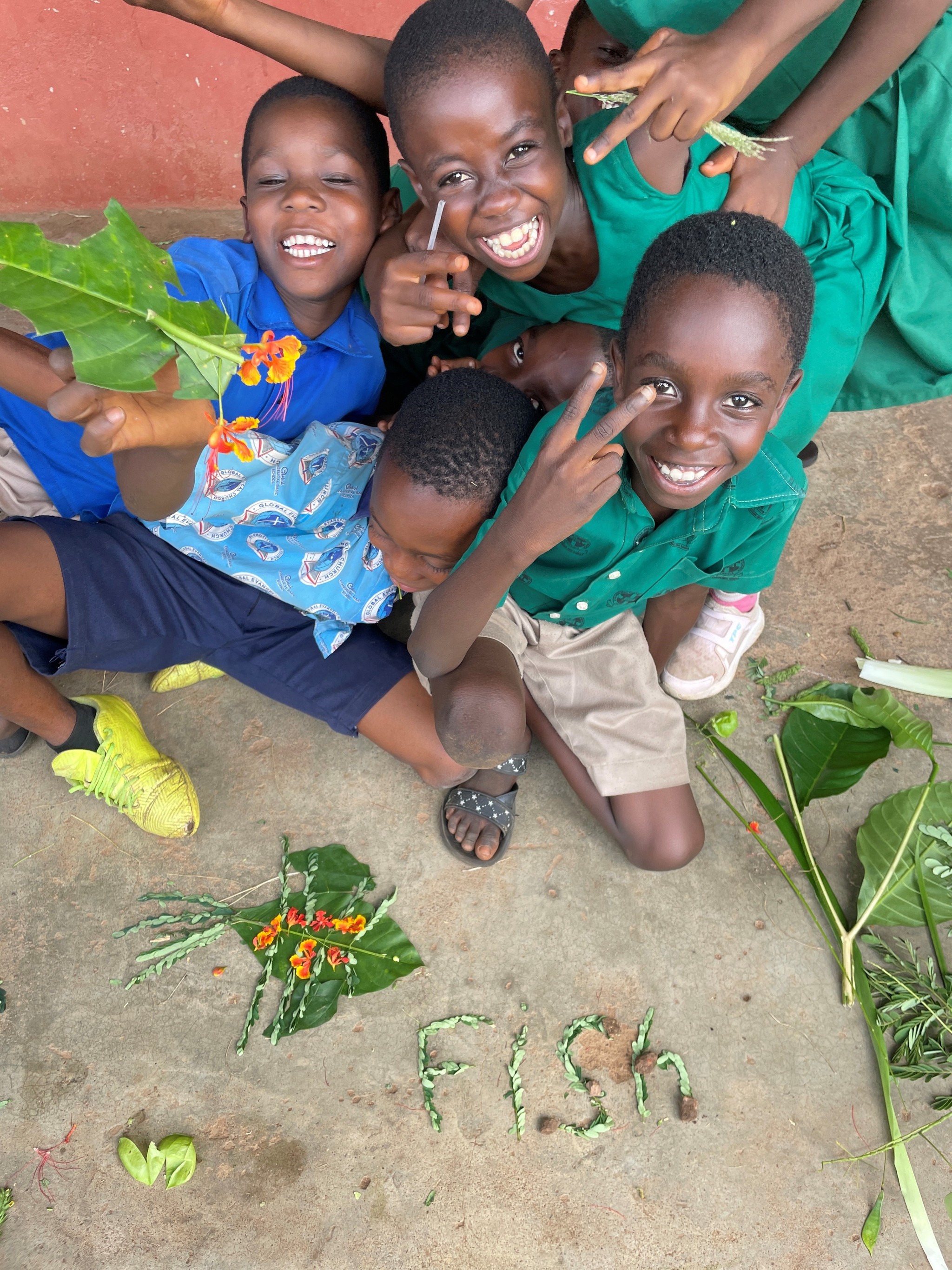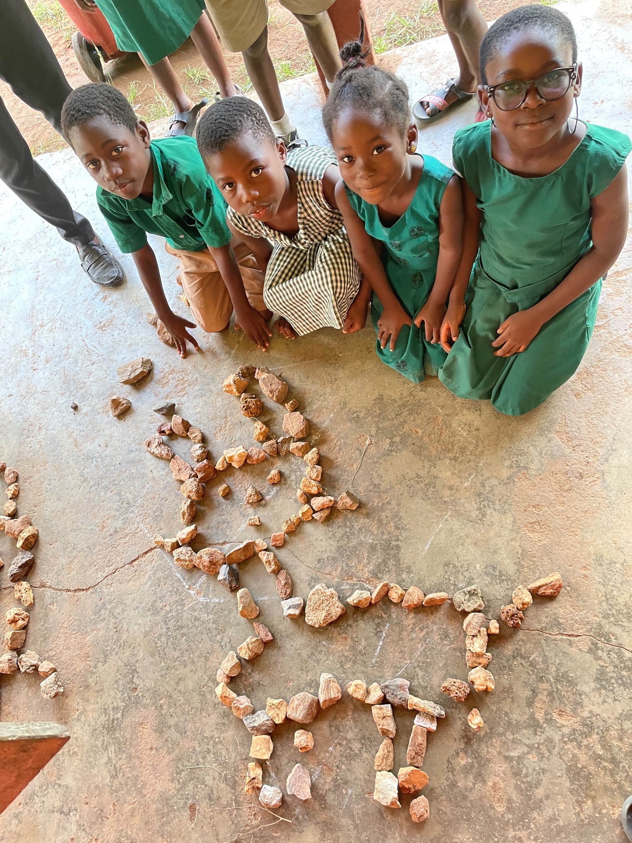 確かにガーナでは、日本に比べて学校で用意されている教材は少ない。しかし、葉っぱや石、花や、もらった布切れ等を使いながら、子どもたちが目を輝かせて自己を表現し、想像力や創造力を育んでいく姿を見られることに、教員として魅力を感じている。準備をしっかりすることで、言葉の壁を越えて伝わるものがあり、日本での教員経験があって良かったとも感じている。