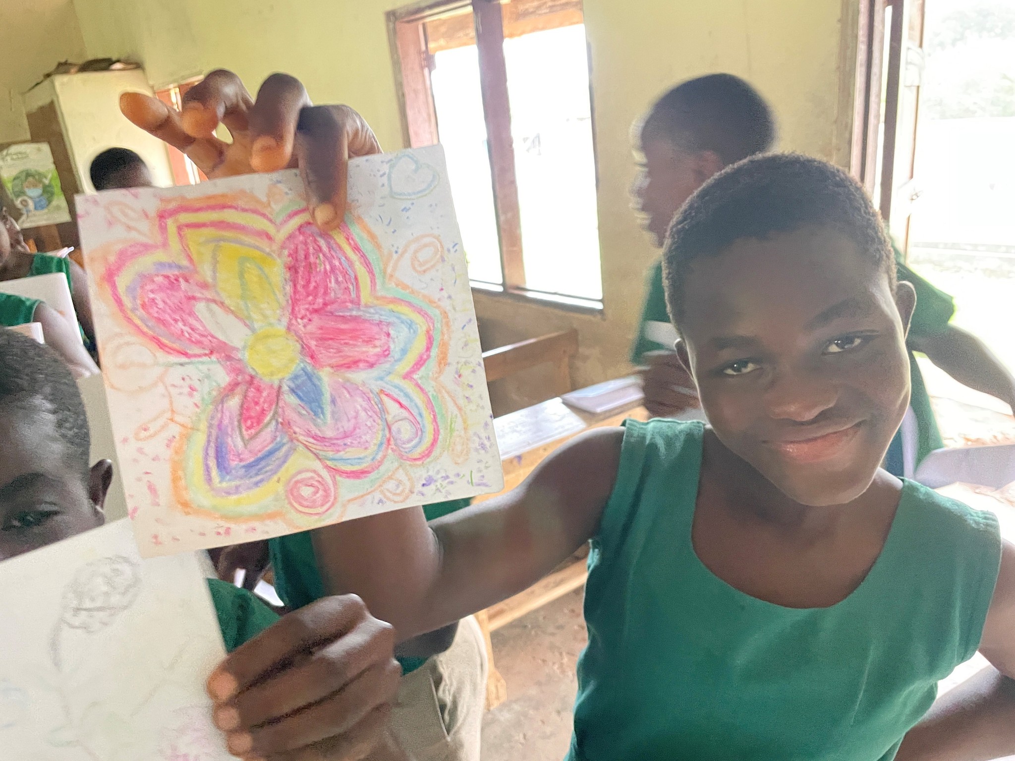 栗栖さんは現在、ガーナ共和国ボルタ州サウスダイ郡にあるペキチャメ小学校でクリエイティブ・アートを教えている。