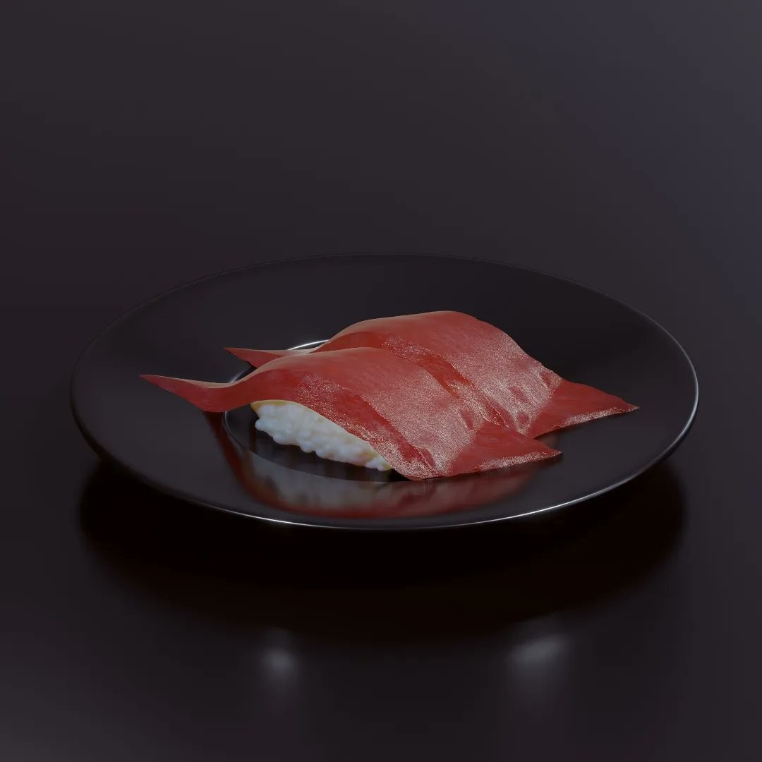 まぐろ、たまご、サーモン、いくら、えび、うなぎ、えんがわ、〆さばをモデリングして乗せています。こちらも高速で回るので何があるのか分かりづらいですが。