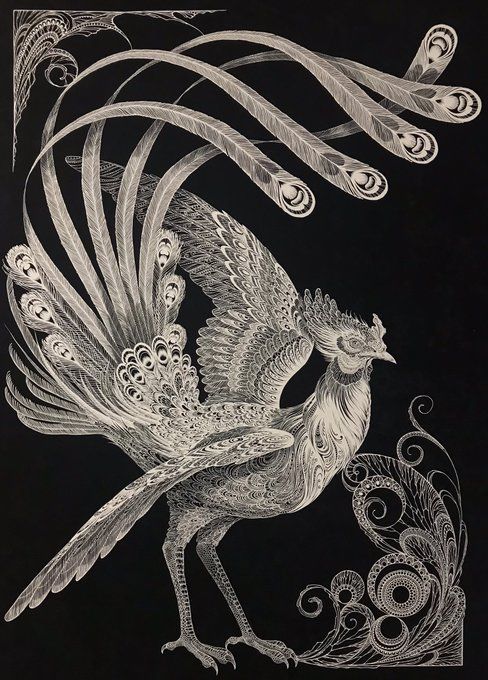 今までで一番お気に入りの作品は2枚あってどちらが一番か選べません。 蛸の方のタイトルは「海蛸子」 鳳凰の方はそのまま「鳳凰」 です。