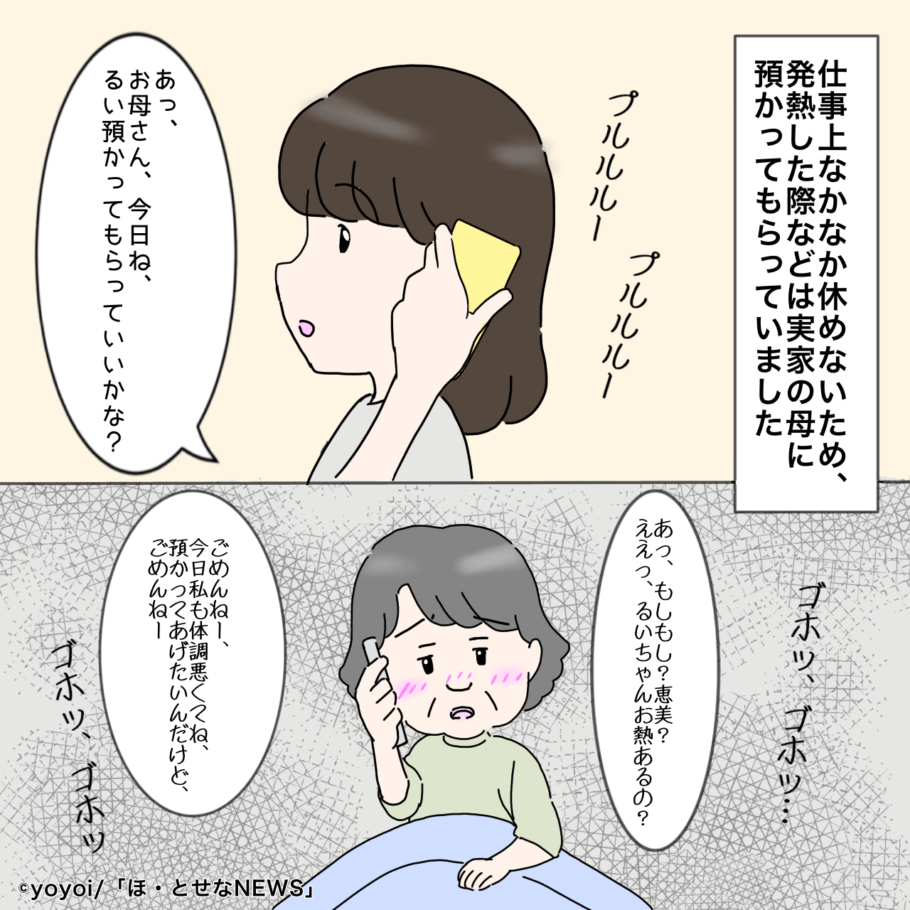 ある日、やはり娘が発熱して保育園をお休みした時、実家の母も体調が悪く、預かってもらえない状況になってしまいました。