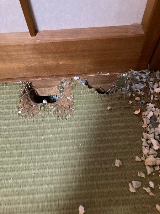 床下ではありませんが、穴はあります。壁や壁紙、押入れの襖などカジカジし放題です。壁は貫通させ、しばらく戻って来なかったことがあります。ヒトの想像を超えた行動にたくましさを感じます。