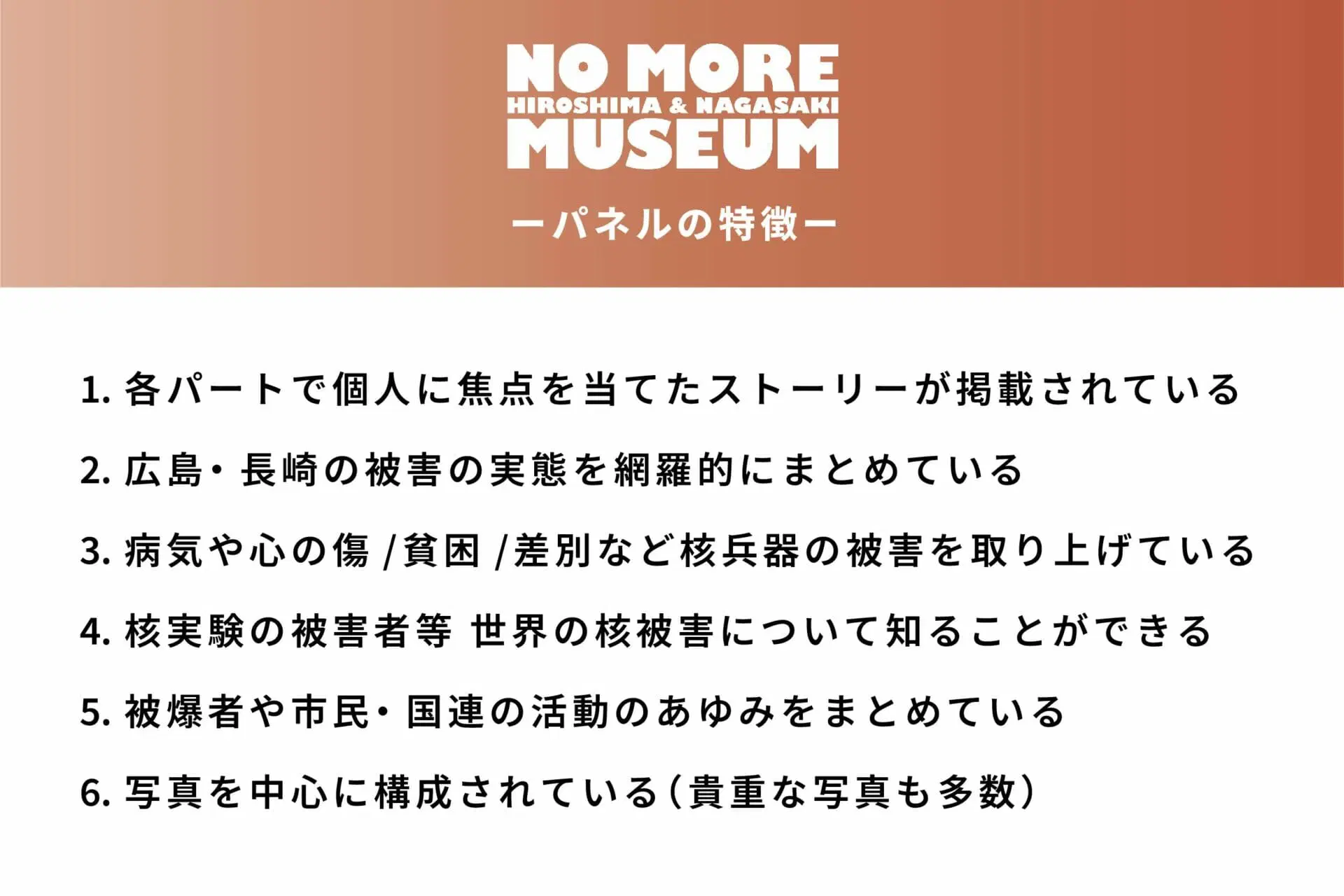 「NO MORE HIROSHIMA&NAGASAKI MUSEUM」は2023年8月6日から公開している。クラウドファンディングで集まった資金を運営費に充てる予定だ。