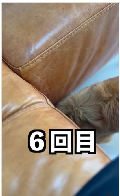 5回目までは嬉しそうに反応していたこたろうくんですが、6回目になるとソファの下に逃げ込んでしまいました。