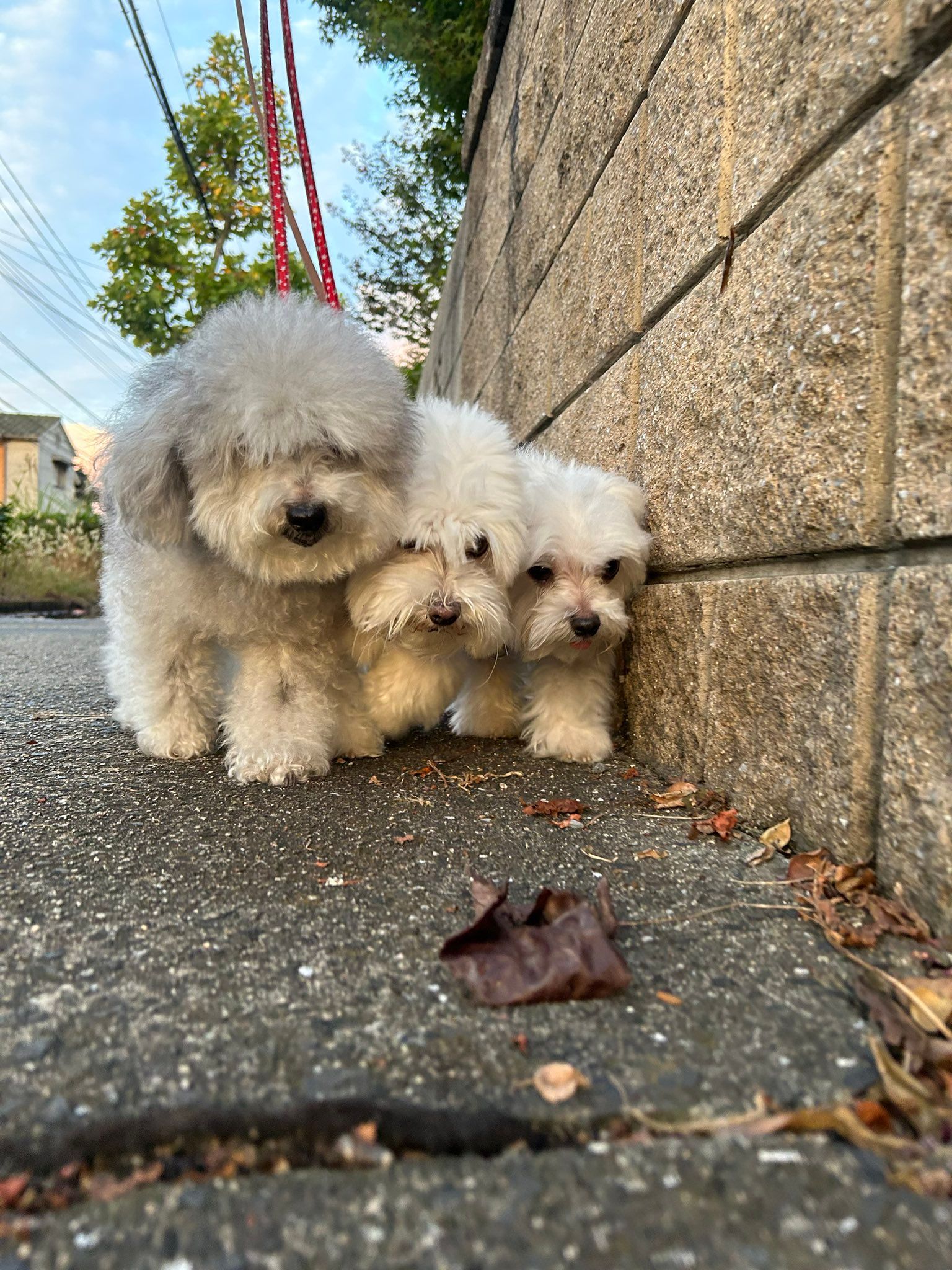 @9Z8lquSv8B3FMpNさんが3匹のお散歩の様子をX(旧Twitter)上に投稿すると、「今日もぺしゃんこで愛おしい」「今朝もグイグイ攻めてますね」「限界ギリギリまで寄せてる笑」など多くの反響がありました。