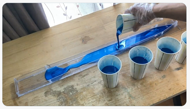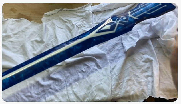 私はもともと「ソードアートオンライン」というアニメが好きで、その中に登場する「青薔薇の剣」というものを作ってみたいと思ったのが始まりです。その剣はアニメや原作の中で透き通るような色味をしており、作るにあたって素材を考えた結果、レジンで作ってみようと思いました。レジンでの刀剣作りはこれがきっかけです。