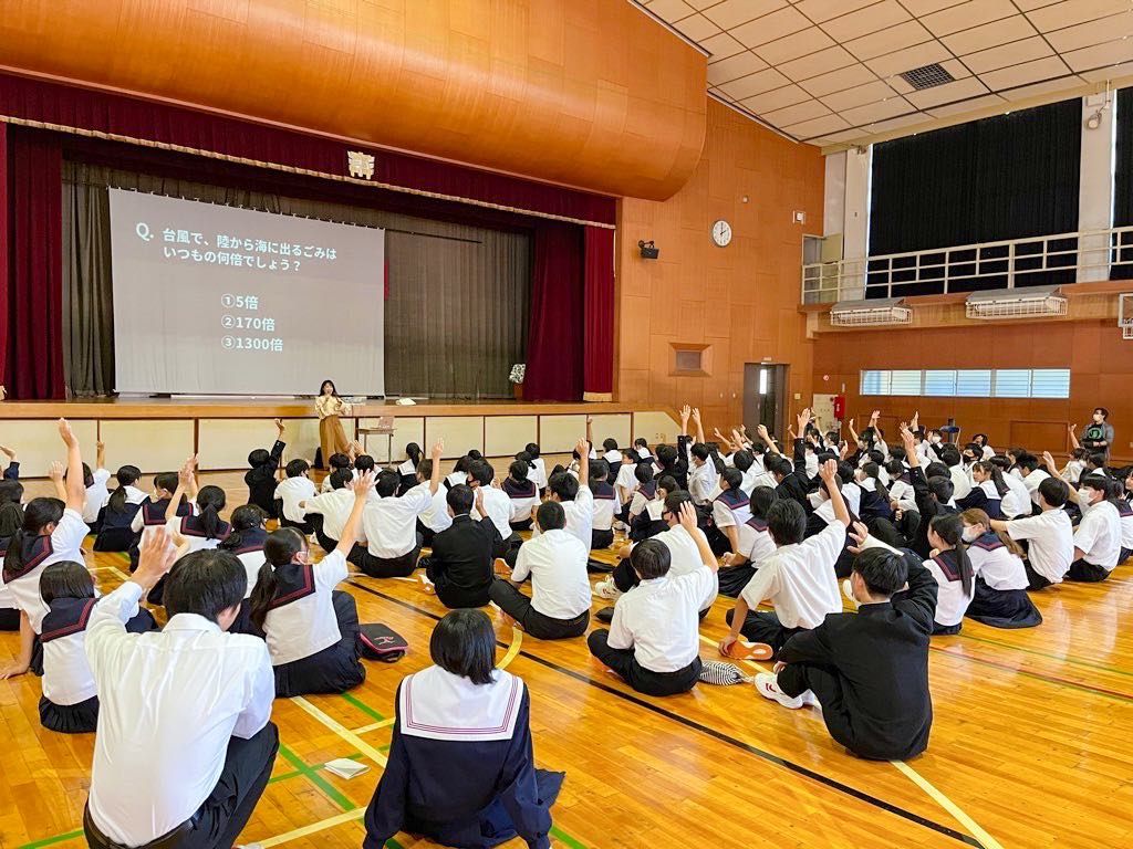 「ある時、環境問題に関心のある人々の繋がりで、オンラインで気候変動について話す機会をいただきました。実はわたしは人前で話すことは苦手で、コロナにより日本帰国後も何度か話す機会をいただいたのですが、「話すのは自分の役割ではないな」と思っていました。だけどあるイベントで、自分の伝えたいことが聞いてくれている人の頭ではなく心に伝わったとはっきり感じた体験をしたんです。その瞬間から、「もっと講演を本格的にやってみたいかも」と思うようになり、2021年5月に「ハッピーにエコる環境講座」と題して講演活動をスタートさせました。この「ハピエコ」という言葉は、「モノや事象の背景にある物語を知って、その上で心の声を聴いて自分がハッピーな選択をしよう」という意味を含ませた造語です。心の声を大切にして自ら選択することで、それが幸せに繋がる、そんな人を増やしていきたいという願いも込められています。全国各地の学校や自治体の環境教育、企業研修、イベント等に呼んでいただき、約2年間半で150回ほど開催しました。」