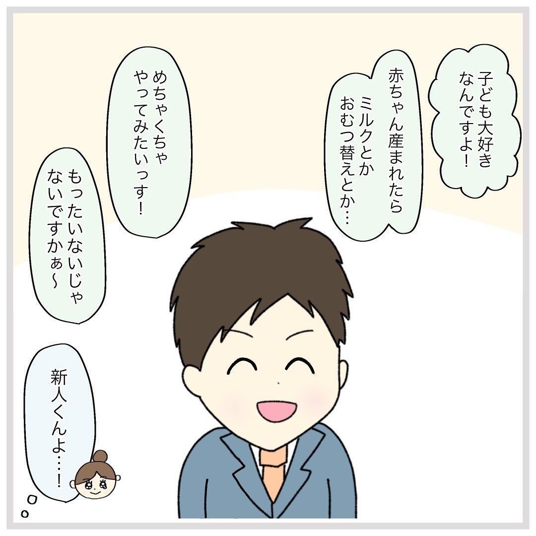 すると、お得意さんと一緒にいた新人の男性社員は「子育てしてみたい」と言い、子育ての魅力を話し始めました。