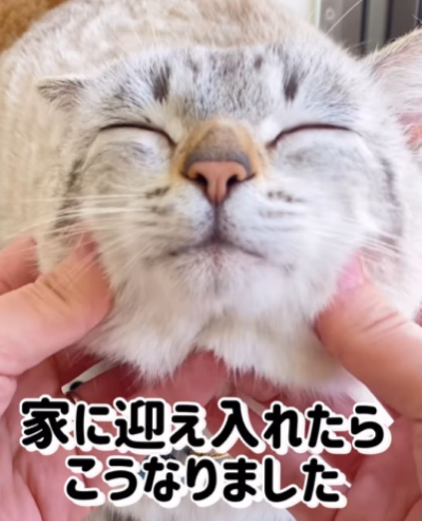 気持ち良さそうにマッサージをされているのは、元野良猫のくうちゃん。ニッコリしたお顔でくつろいでいるくうちゃんですが、半年前はまったく違ったようです。