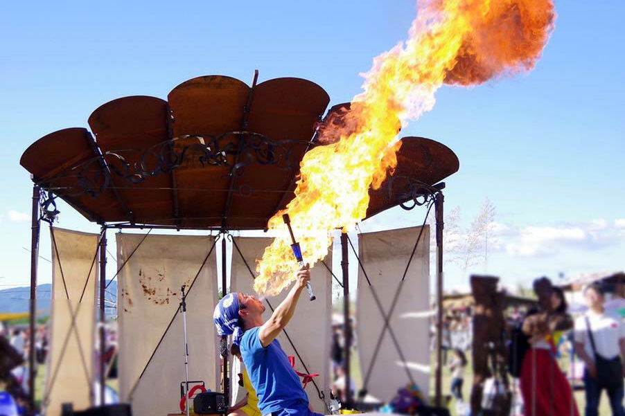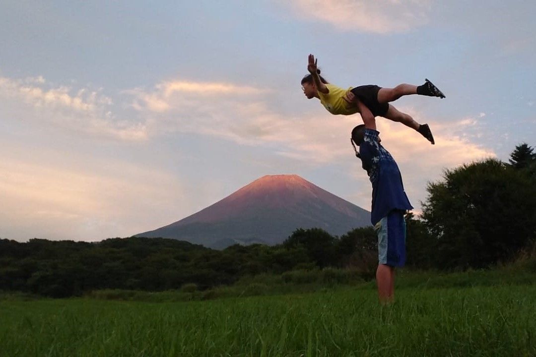 愛知県出身のあおき 三朝+うたこさんは現在滋賀県長浜市に移住し、全国のさまざまな地域でアクロバットを中心に夫婦で活躍しているパフォーマーです。