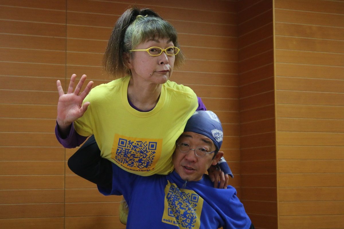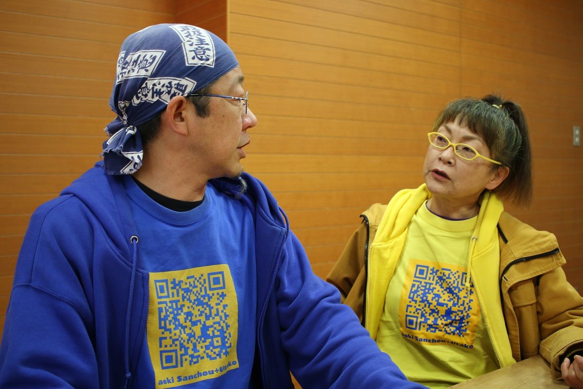 そう語るのは、愛知県出身のめおとパフォーマー「あおき 三朝(さんちょう)+うたこ」の黄うたこさん。平日に仕事が入ることは少ないため、被災者の気分転換にでもなれば嬉しいと言います。