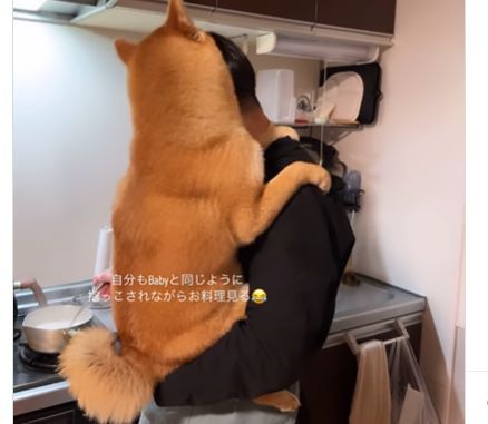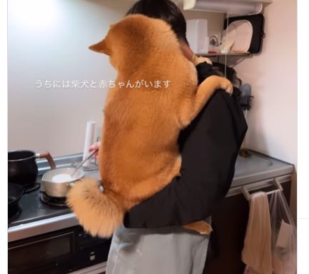 このように抱っこされる柴犬は珍しいのではないでしょうか。とても甘えている様子がわかりますね。