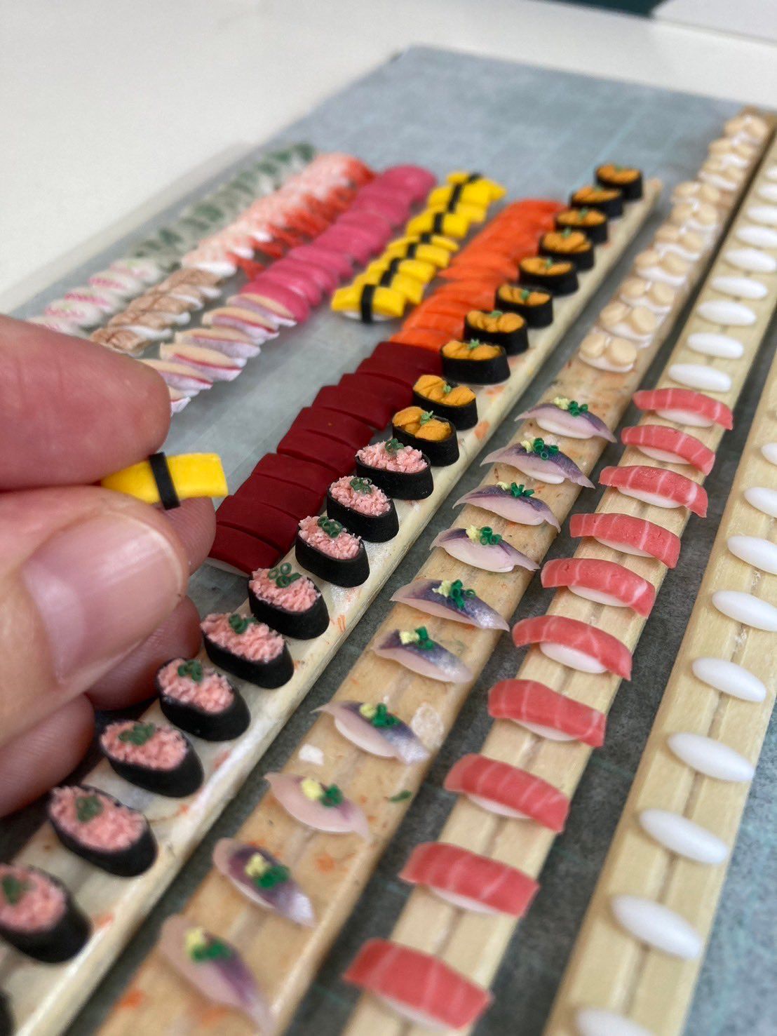 実際に石川県にある飲食店の商品をミニチュア作品で作った金沢美味しいもの作家さん。SNSにアップするだけでなく、実際にお店に行き「これください」と作品を見せることでお店の方々を驚かせた。その反応が嬉しく、いつしか金沢美味しいもの作家さんが経営している障がい者支援の場でも、障がい者の方々に夢のある仕事を提案したいと始めたミニチュア作品だった。