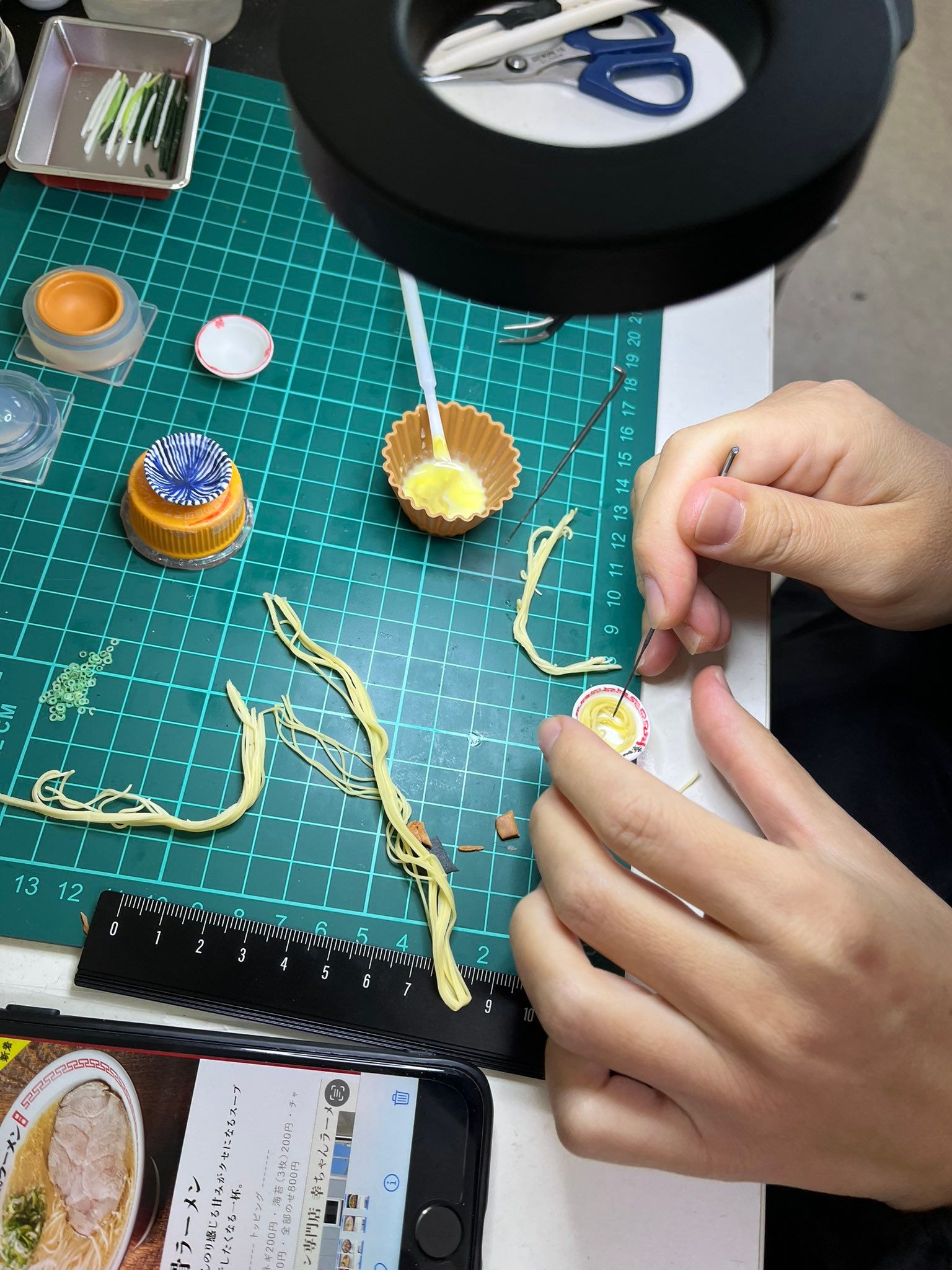 「コロナ禍の中、知り合いの飲食店が営業できず飲食形態を変えてラーメン屋を始めていました。何とか応援できないかと、ミニチュア作品で話題になり宣伝につながったらというところから私たちのミニチュア制作は始まりました」