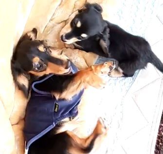 普段から基本的には仲良しだというこうちゃんとお子さん。こうちゃんが一緒に遊んでくれているのだそうです。どちらかというとこうちゃんが大人で、お子さんのやんちゃにもある程度譲歩したり距離を取ったり、上手くかわしてくれているといいます。