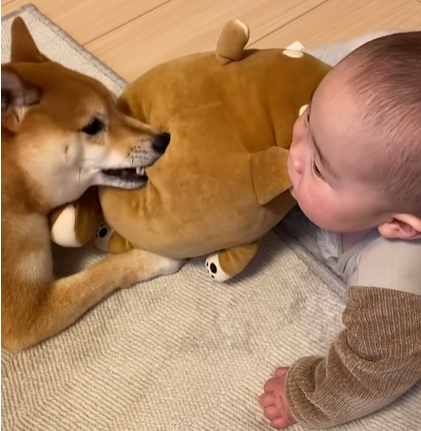 Instagramでは今、リビングで生後7ヶ月の息子さんがぬいぐるみで遊んでいる様子を撮影した動画が話題になっています。しかし、よく見ると…遊び相手はなんとワンちゃん!一見仲よく遊んでいるかと思いきや、実はワンちゃんと息子さんの間では壮絶な戦いが繰り広げられていたようです。