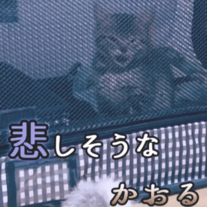 はじめておうちに来た日、不慣れな環境で不安げな表情を浮かべるかおるくん。
