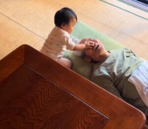 お子さんとひいおじいちゃんが一緒に過ごす様子は、見ていてとてもほっこりしますね。ひいおじいちゃんからも、ひ孫さんへの愛情が感じられる動画でした。