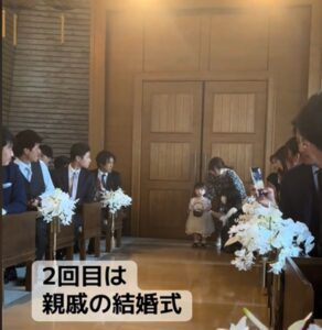 このときのりみちゃんは、バージンロードを走り回って自由に遊び、披露宴では疲れてしまい、おばあちゃんに抱かれてほとんど寝ていたのだとか。