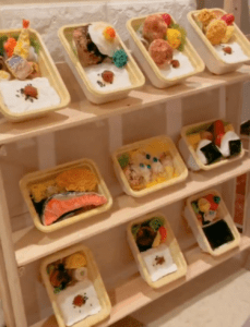 棚に陳列されているお弁当やお寿司、お蕎麦などの一覧はとてもリアルですが、粘土細工でできています。なんと、YouTubeで見よう見まねで作っているというから驚きです。
