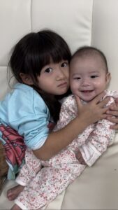 お姉ちゃんは、妹さんがお腹にいるときからたくさんお腹に話しかけたり、胎動があると一緒にさわって喜んだりしていました。妹さんに会えるのをずっと待っていたのでしょう。