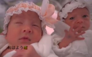 早産だったことから、お子さんたちはNICUとGCUに1ヶ月入院することになりました。長男くんと長女ちゃんがひと足先に退院が決まり、記念に撮影することに。とくに小さかった次女ちゃんは、この日にはまだ一緒に退院できませんでしたが、次女ちゃんにもベビードレスを着てもらい、3人揃った動画を撮影しました。
