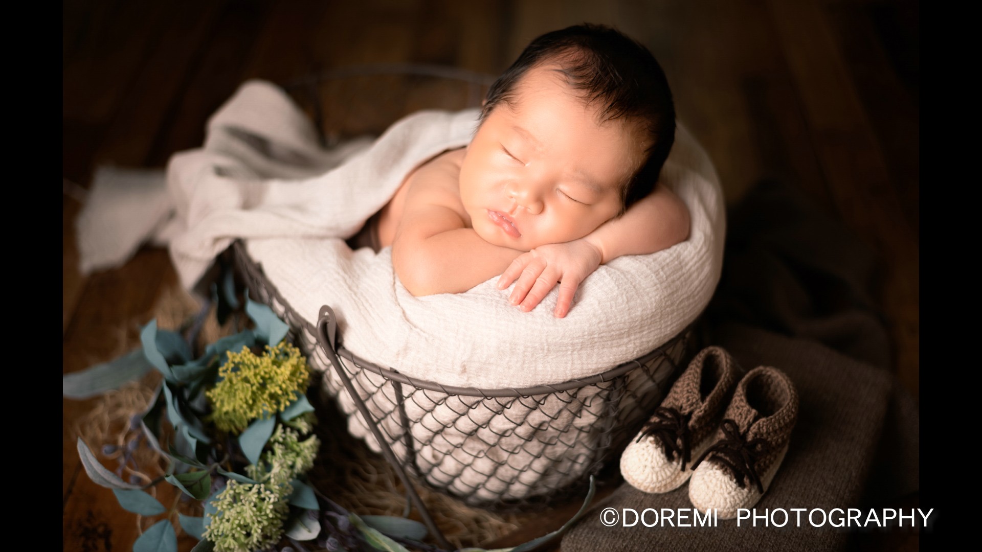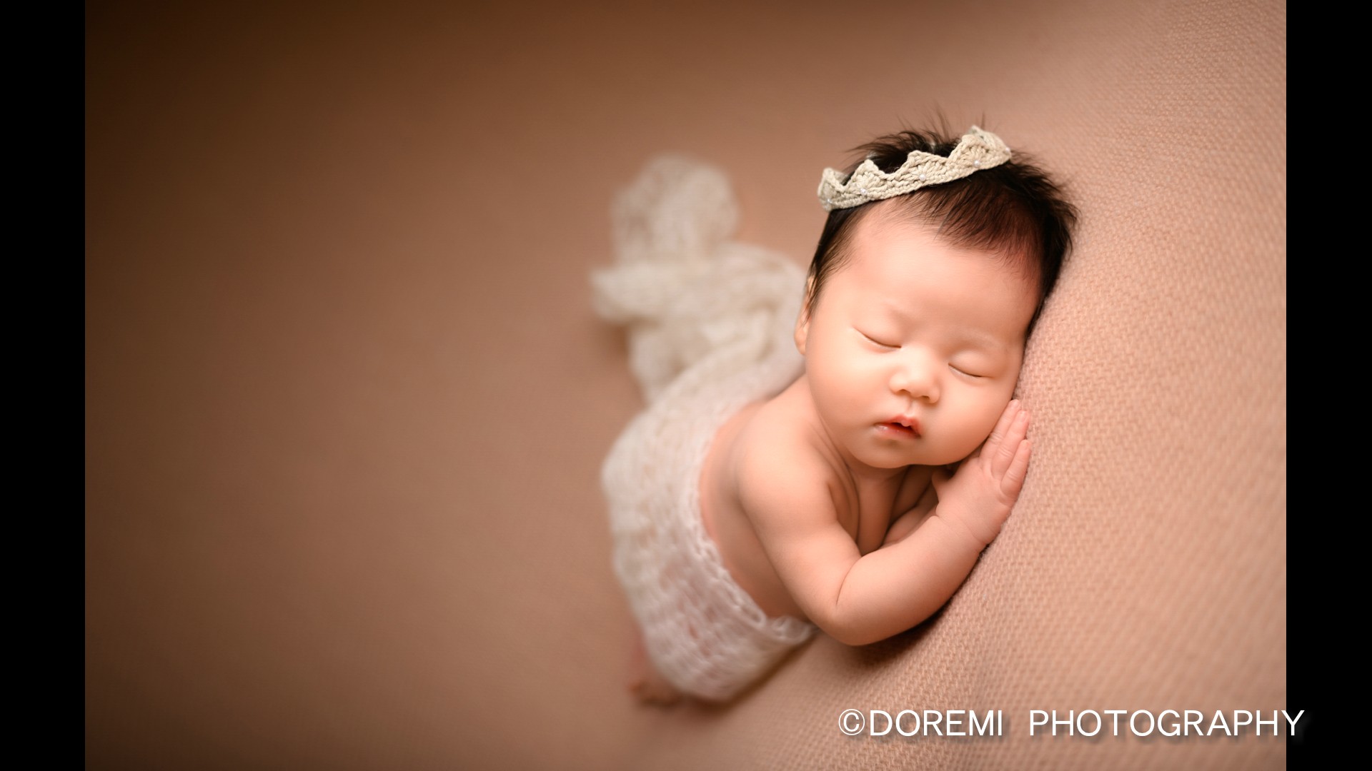 生後1週間から3週間までの「新生児」と呼ばれる時期に撮影された写真です。ニューボーンフォトと呼ばれています。