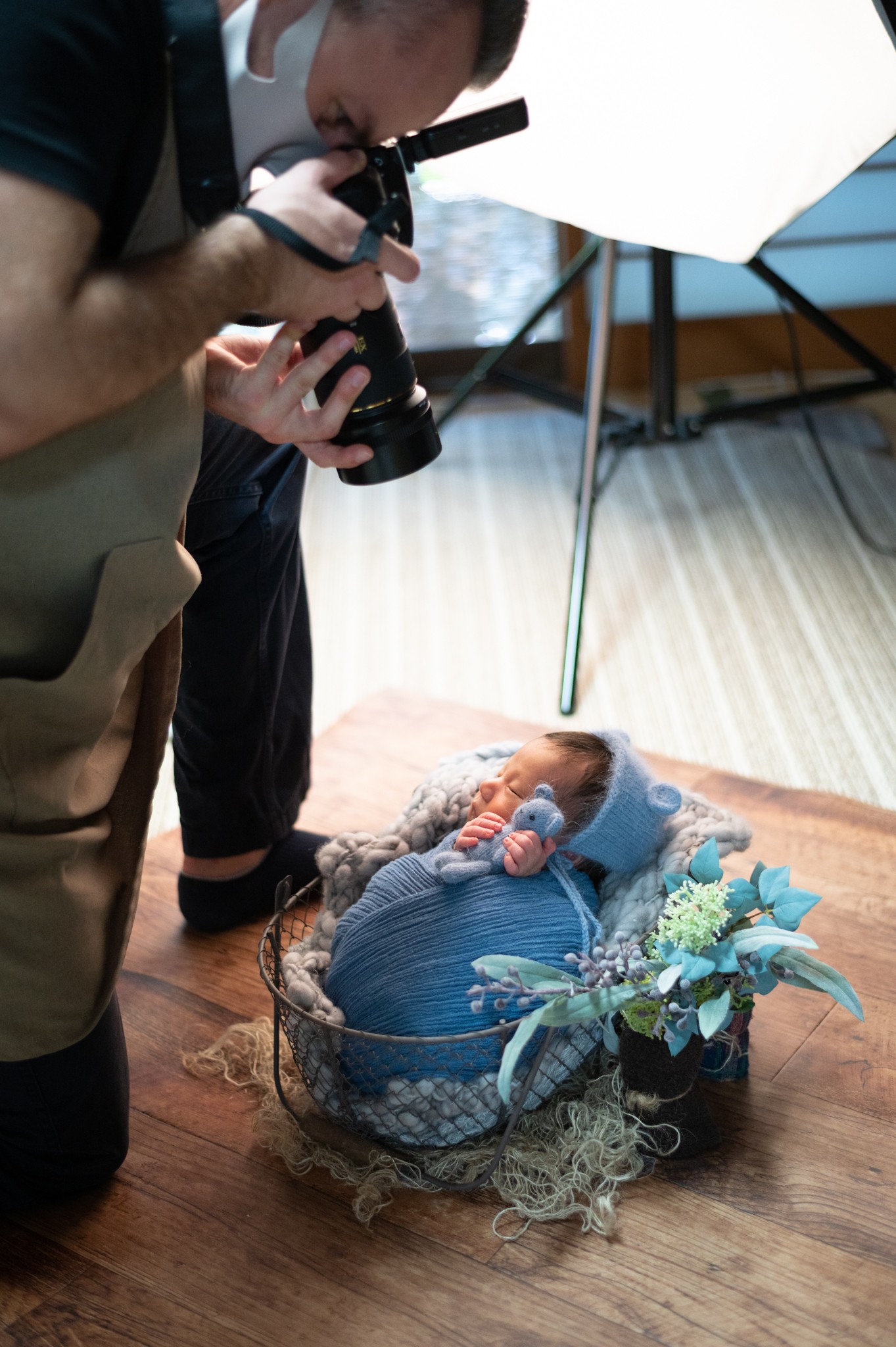 免疫力が低い新生児の撮影を、GregさんとTomokoさんは細心の注意を払って行っています。