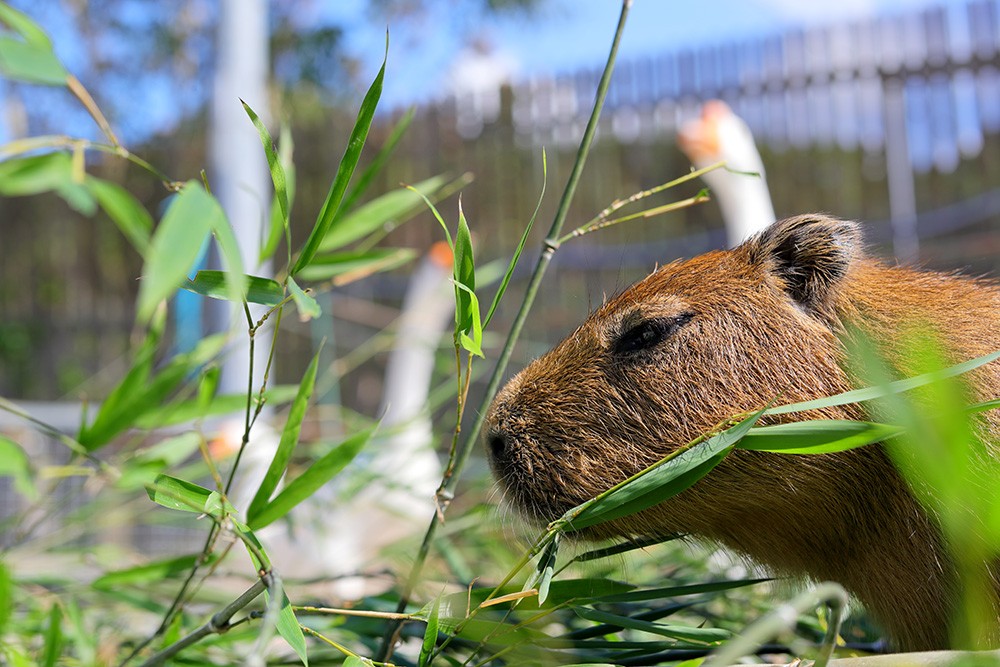 カメラを持つ前に、Gregさんは…。ミルクをあげてごあいさつ。