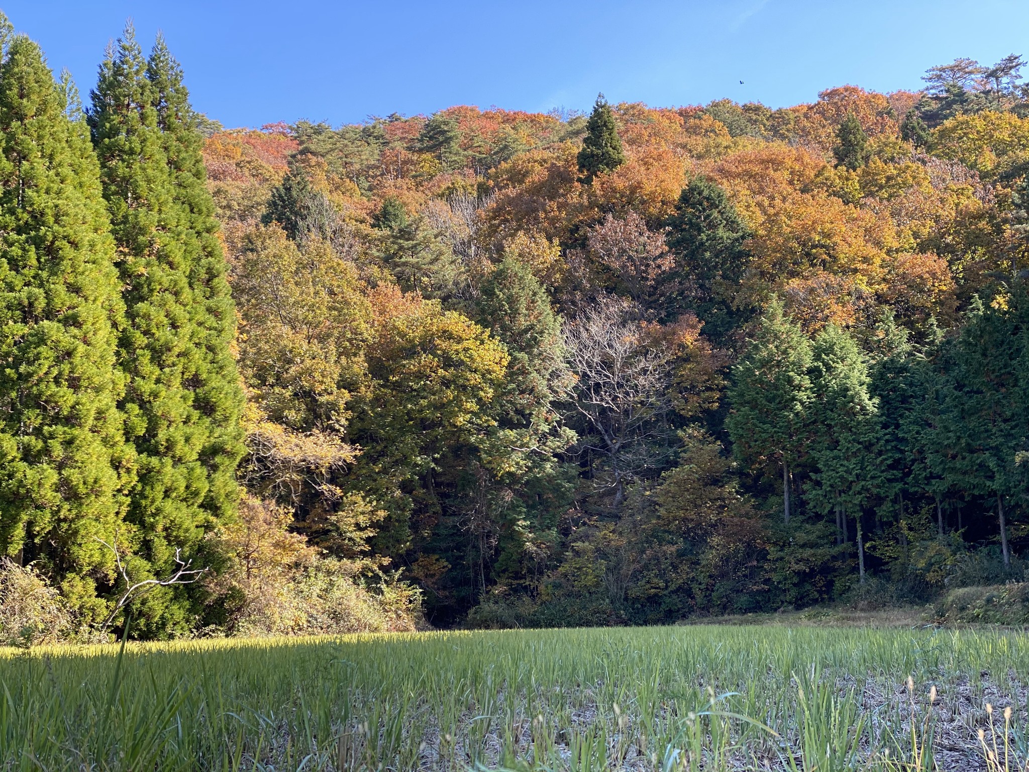 谷側を見下ろすと、何十年も耕作放棄されている棚田が続く。