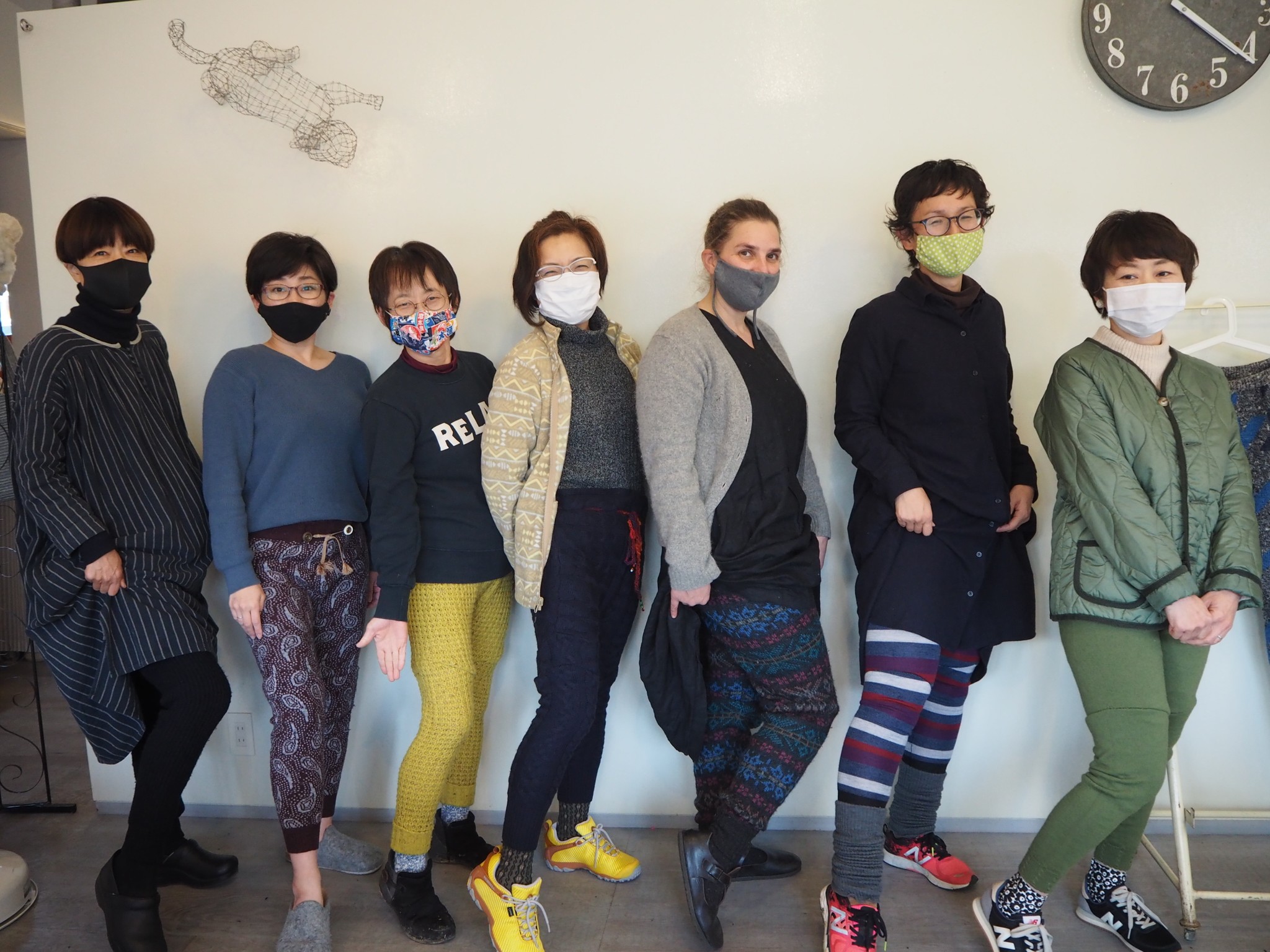 なごやかな雰囲気のなか、思い思いのリメイクを楽しみました。はじめること約3時間、世界に一つだけのももひきが出来上がり。無地のものも柄のものも、それぞれ素敵です。さっそく履いてみて「あったかーい!」「わー、かわいい!」歓声があがります。