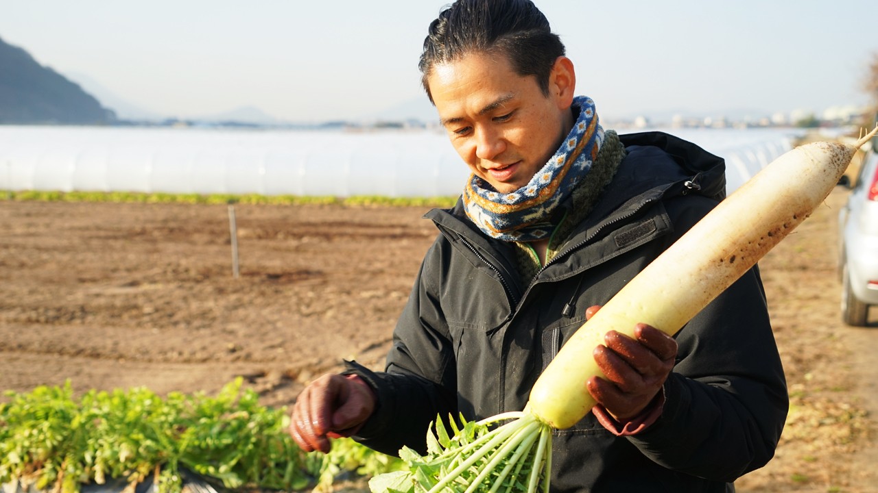 「作物と話ができるようにならんといかんのや」と語る宮下さん(右)