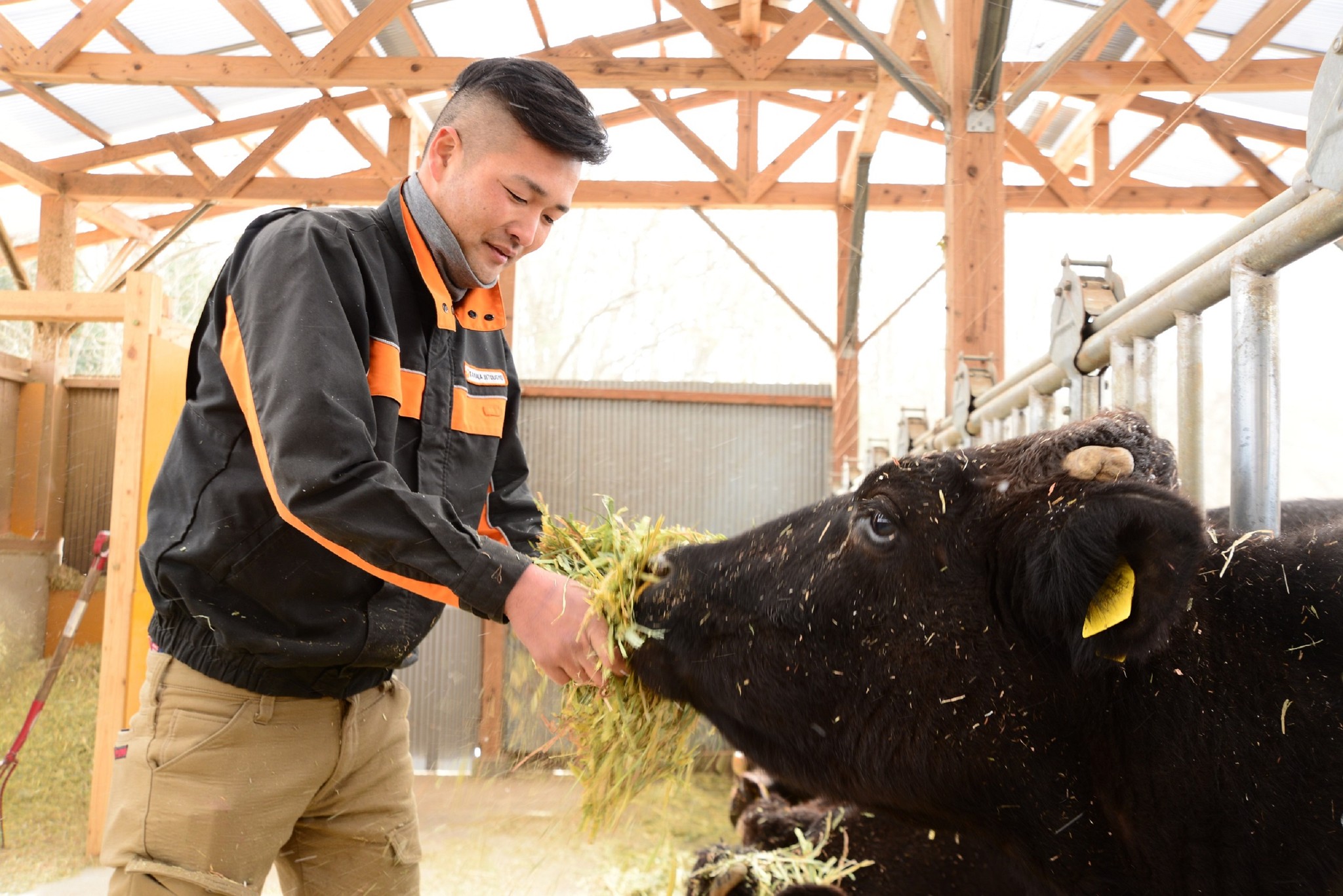高校で和牛に初めて触れ、「経済動物として収益を上げるためには十人十色のやり方があり奥が深い」と興味を抱きました。県農業大学校に進み、畜産を専攻。牛を飼う仕事に就きたいと考えましたが、個人での単独就農は膨大な初期投資が課題となりました。収入面で一抹の不安もあり、会社に就職して牛飼いに携わる手段を選びました。
