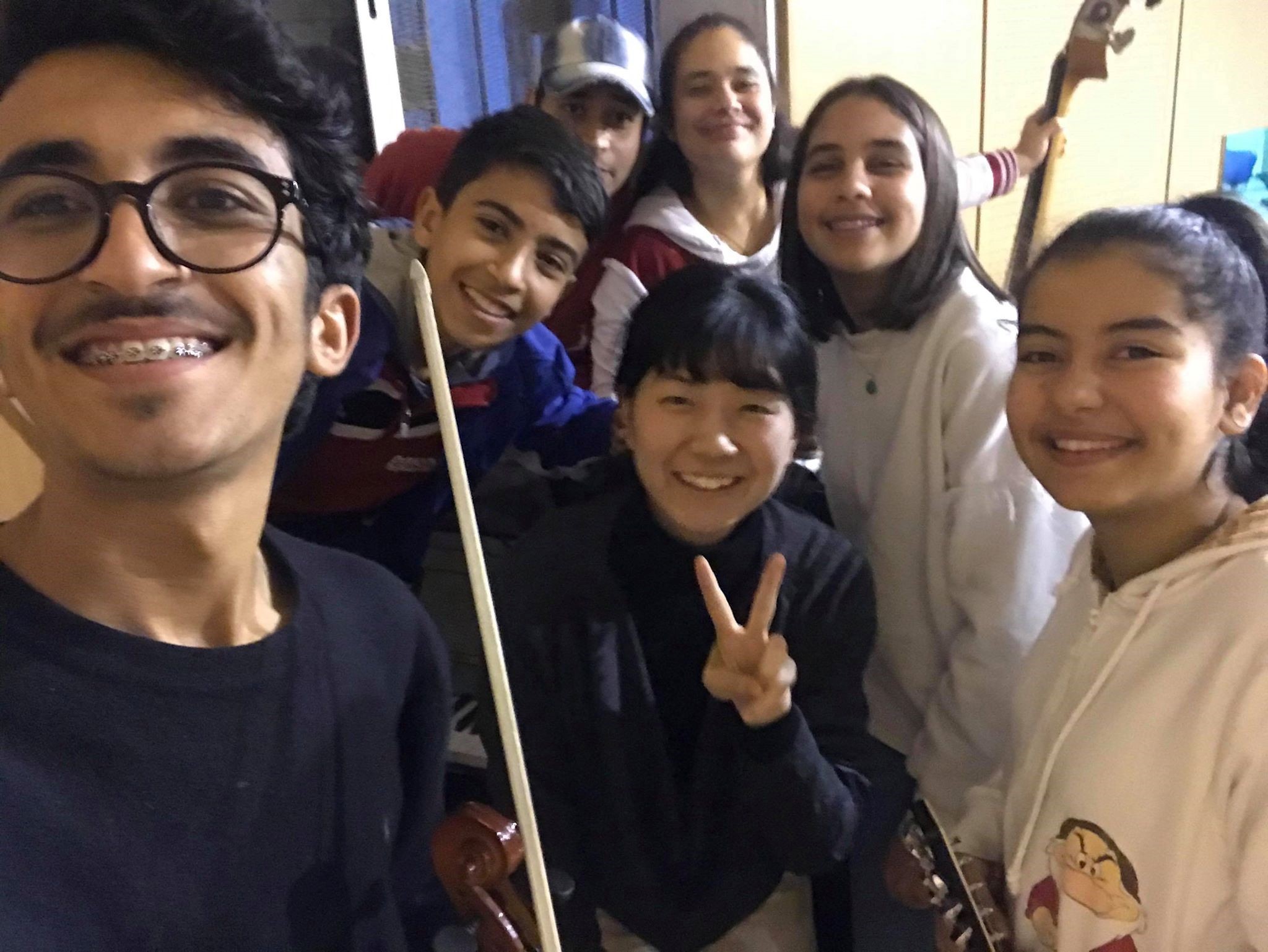 チュニジアの日本大使館でチュニジア国歌を演奏する冨田さん