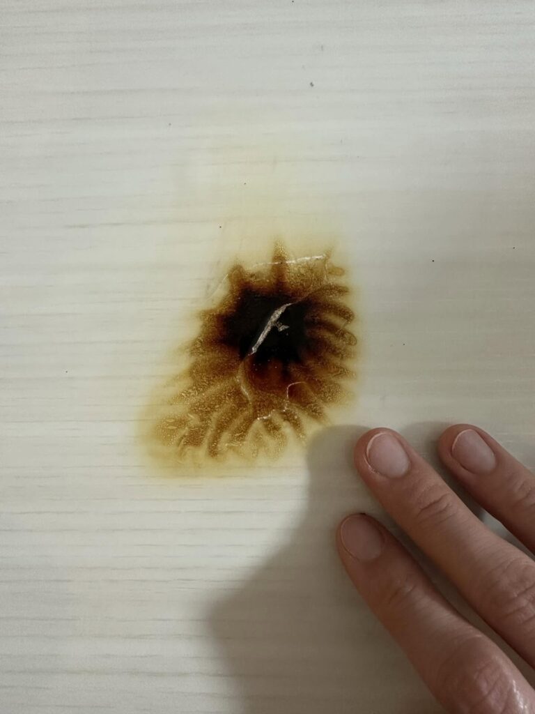 • 鉄板でテーブルを焦がしてしまった女性 →焦げ跡を生かした素敵なアイデアに…「うわっ!すごっ!」「え!天才!」「マネしたくなる」