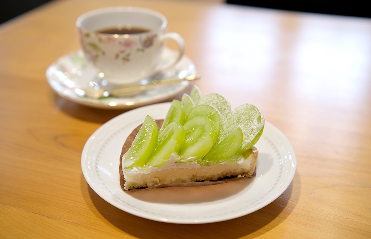カフェ・グルマンディーズはジェロムさん一家が営むカフェ。焼きたてのタルトは地元の果物が多く使われています