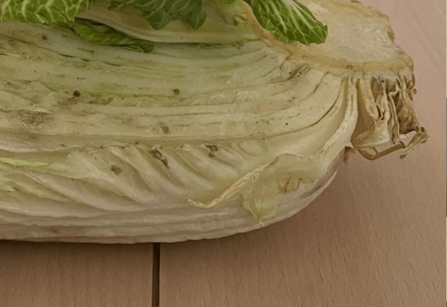 • キッチンに置いていた白菜。冷蔵庫に入らず、放置した結果…「白菜の逆襲だ」「春を感じます」